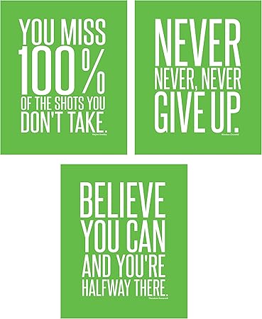 Motivational Inspirational Famous Quotes Teen Boy Girl Sports Wall Art Posters Decorative Prints Workout Fitness Wall Decor Home Office Business 8 X